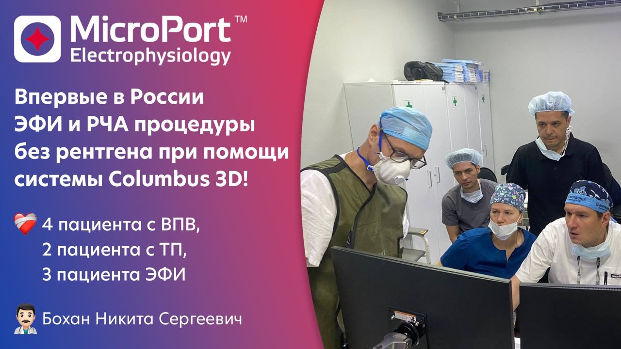 Впервые в России ЭФИ и РЧА процедуры без рентгена при помощи системы Columbus 3D