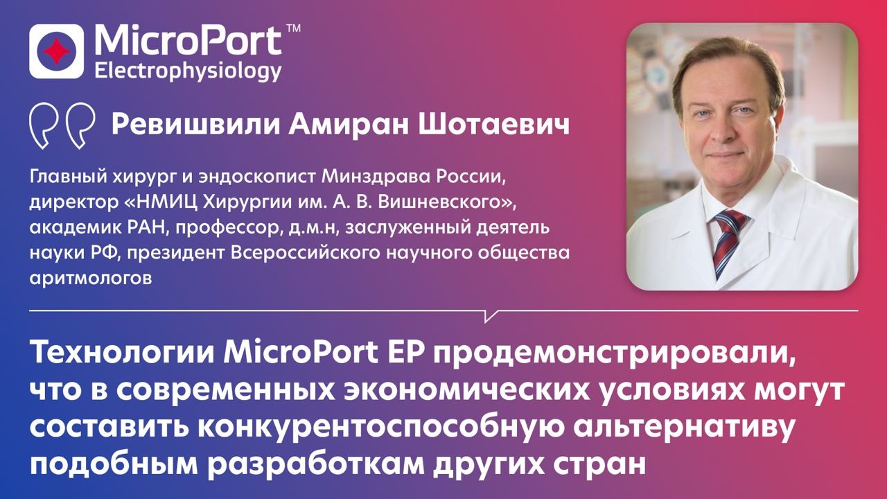А. Ш. Ревишвили, директор НМИЦ хирургии им. А.В. Вишневского, дал высокую оценку технологиям MicroPort Electrophysiology